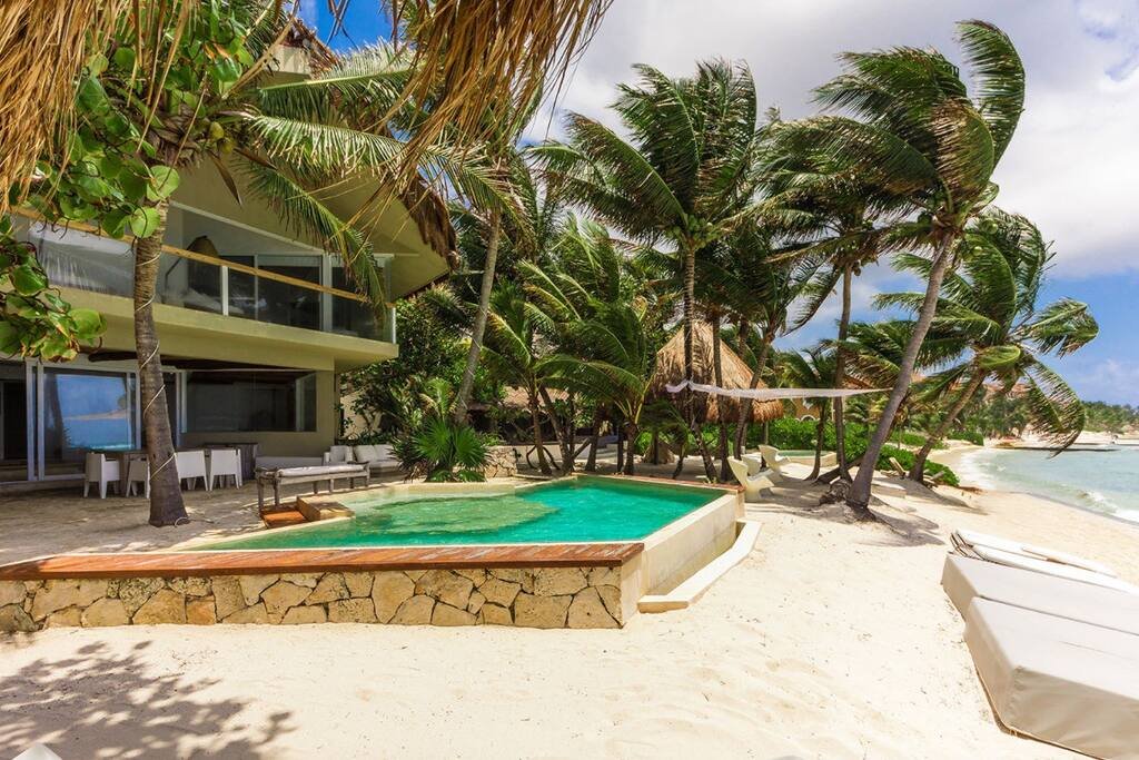 The villa’s outdoor space features a rooftop palapa with a double chair lounge, wet bar, multi-level beachside pool, and deck area. Indulge yourslef in the pristine Fatima Bay Beach and enjoy relaxation or kayaking.